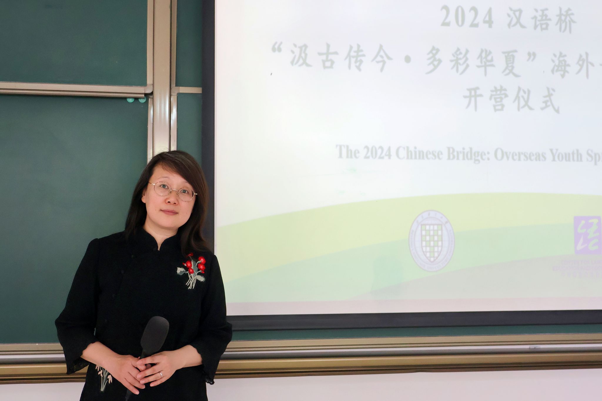院长、中华文化国际传播中心主任苏英霞教授在开营仪式上致辞。苏院长代表学院对营员和带队老师们表示热烈欢迎。苏院长希望所有远道而来的青少年营员们能在北京这个国际化大都市,在北语这个“小联合国”里,享受多元文化魅力,理解文明互鉴对于促进世界和平与友好的意义,未来成为促进中外民间友好交流的使者。