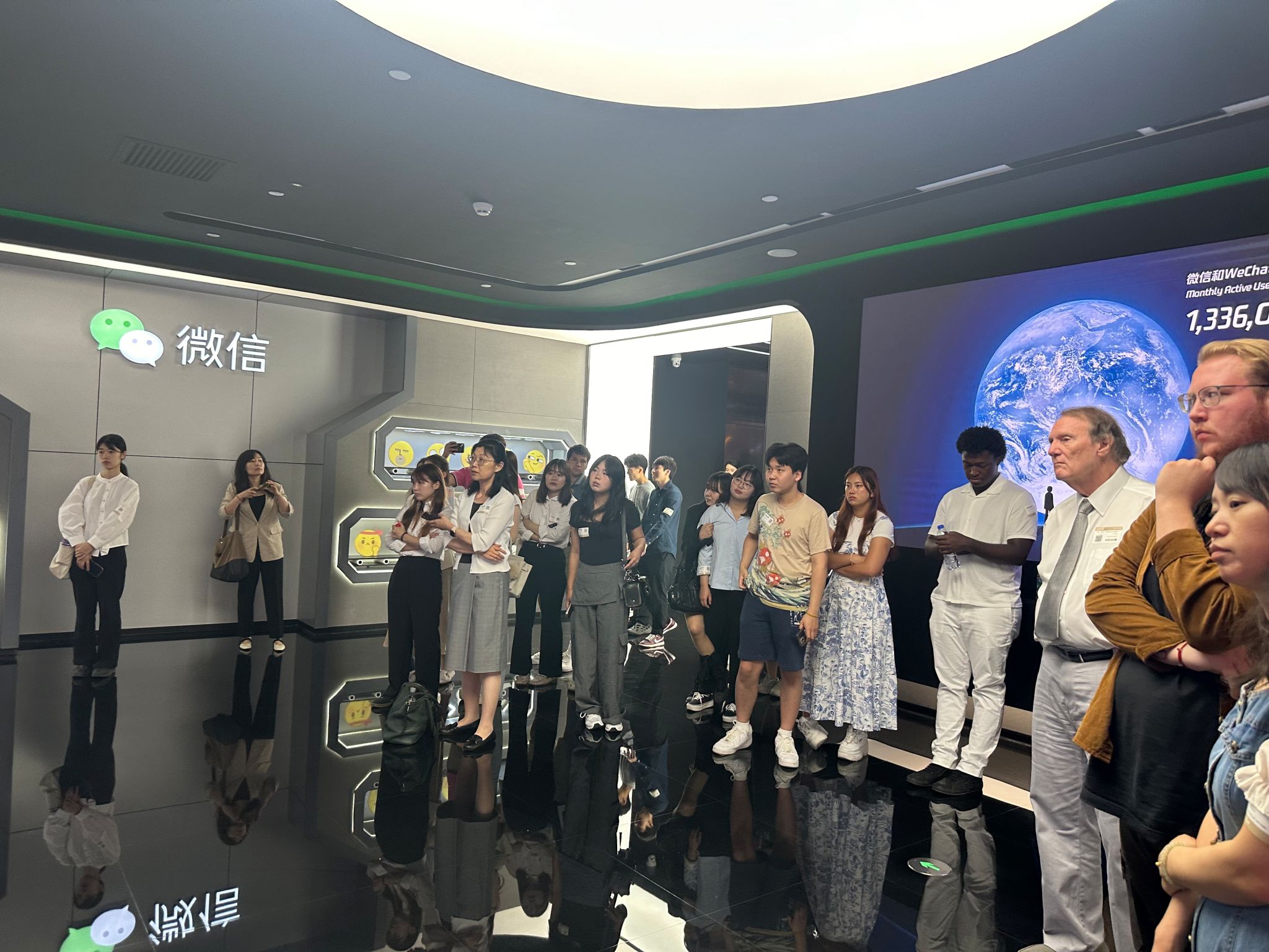 承办的2024年汉语桥项目“中国印象——中美青年交流营”,与美国贝尔蒙特大学(Belmont University)研学团的成员们一起赴腾讯公司总部参观。