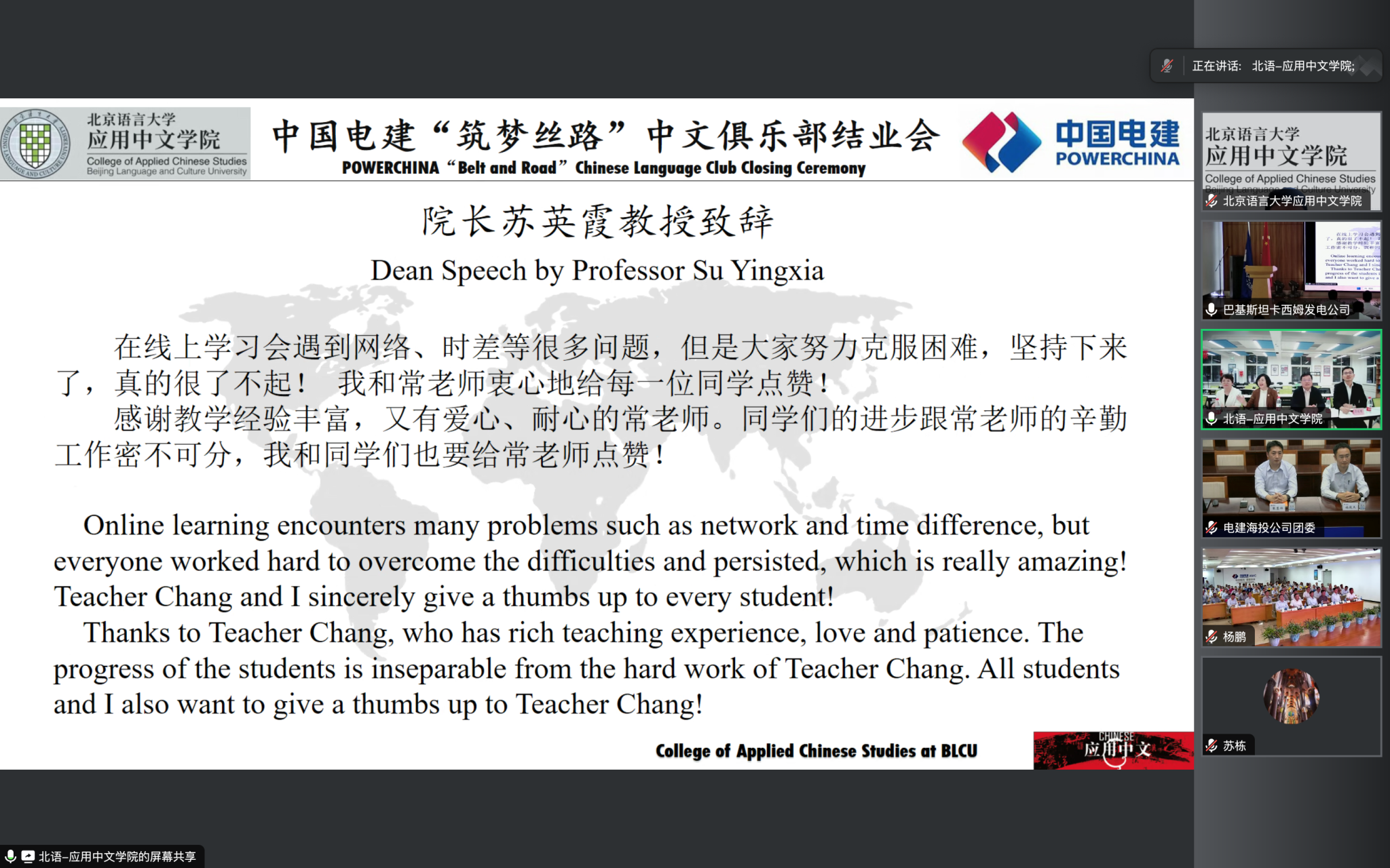 与中国电力建设集团合作的“筑梦丝路”中文俱乐部举行线上结业仪式。正妹av