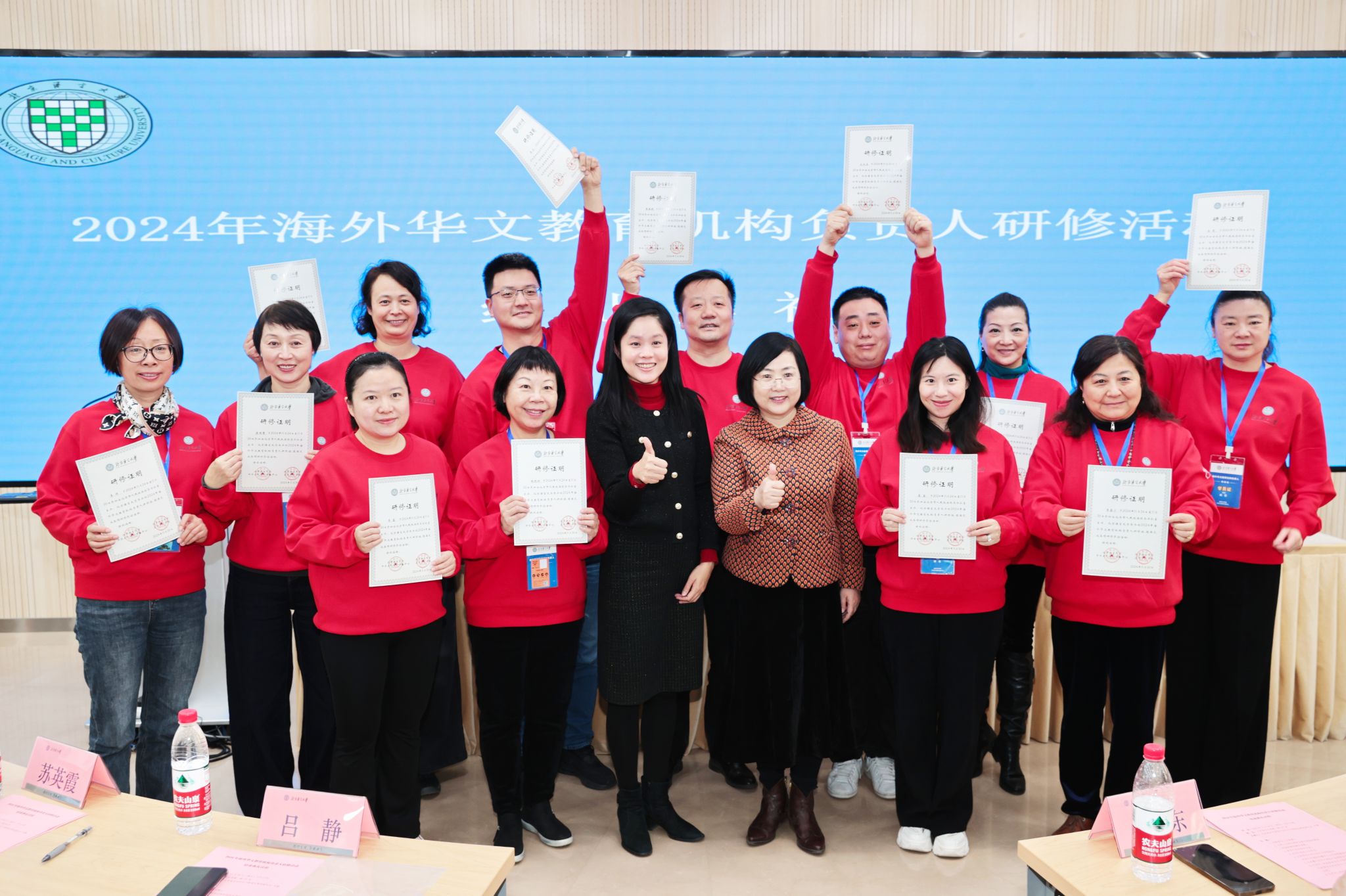 的辛勤付出表示感谢。他指出,当今国际形势复杂,华文教育事业任重道远。一是要加强交流互鉴,相互保持联络;二是要注重创新发展,在继承传统华文教育的基础上,敢于创新运用现代化科技手段提升华文教学的趣味性和有效性,吸引更多人参与到学习中来;三是要注重培养专业化的教师队伍,让华文教育后继有人;四是要加强与国内的合作,欢迎学员们多回国学习交流“充电”。他表示,全体学员要把此次研修活动中获得的知识和启发,转化为推动海外华文教育创新发展的实际行动,让海外华文教育这项“留根工程”不断打造出精品,把海外华文教育这项光荣的事业不断推向新高。