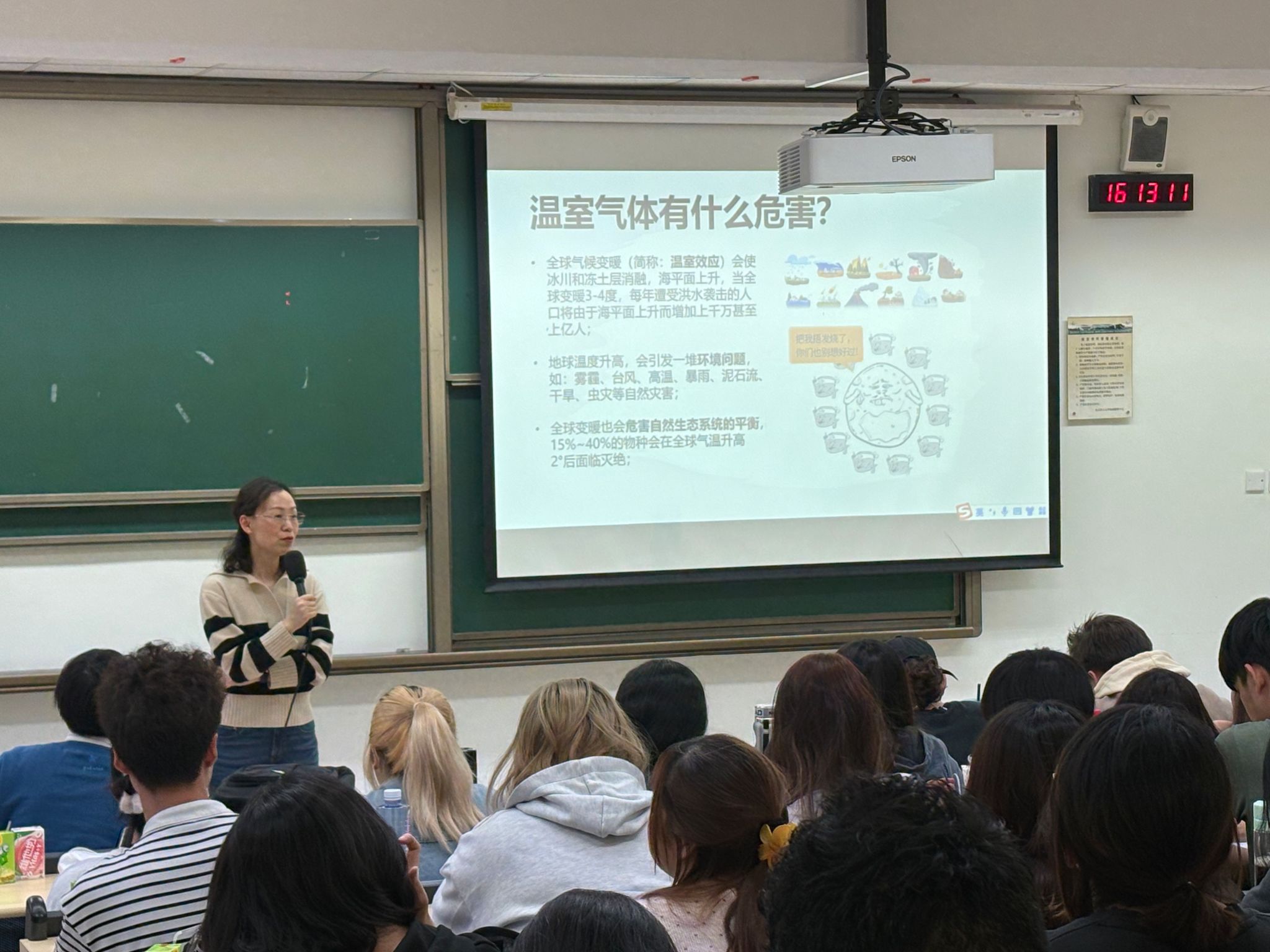 在互动环节,国际学生们尝试运用专业术语探讨碳捕集和碳封存技术的应用场景。吴霄岳老师在总结时指出,本次讲座是对国家生态文明建设战略的生动诠释,是培养具有可持续发展视野的国际中文人才的重要实践,也彰显了中国企业在绿色低碳实践发展之路上的先锋力量。