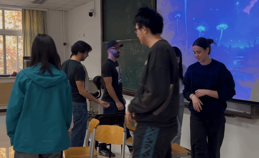 活动以“抢椅子”、“击鼓传花”游戏破冰。抢椅子游戏中,瑞士留学生安明杰虽未能获胜,仍礼貌致意。击鼓传花环节,中国学生李玟霖演唱中国流行歌曲,赢得全场掌声。
