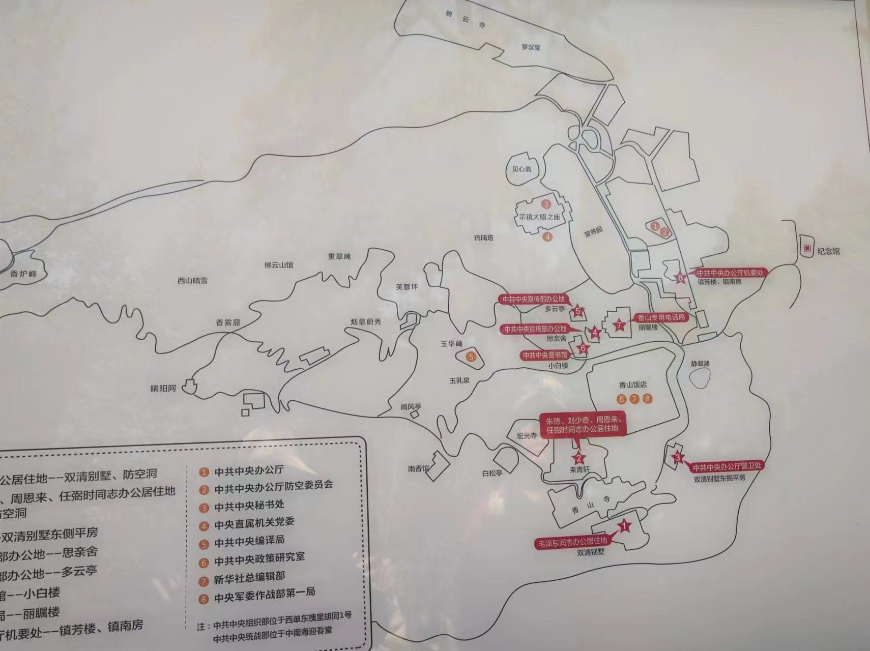 随后,白浩老师带领全体同学前往双清别墅,共同瞻仰毛泽东同志等老一辈党和国家领导人在新中国成立初期办公居住的地方。从卧室、办公室、会客室到饭厅,各个房间的家具陈设都一如原样,每一处都透露着革命先辈们俭朴的精神。双清别墅不仅是中共中央进驻香山后党中央的办公居所,更是中国共产党“进京赶考”的第一站,是中共中央的指挥中心,它见证了中国革命走向胜利的历程。接着,同学们自愿组队参观了香山革命纪念地的八处旧址,缅怀老一辈无产阶级革命家的丰功伟绩,学习老一辈无产阶级革命家崇高的精神品质,从而深入体会革命奋斗精神。所有参观活动结束后,全体师生共同乘坐大巴车返回学校。