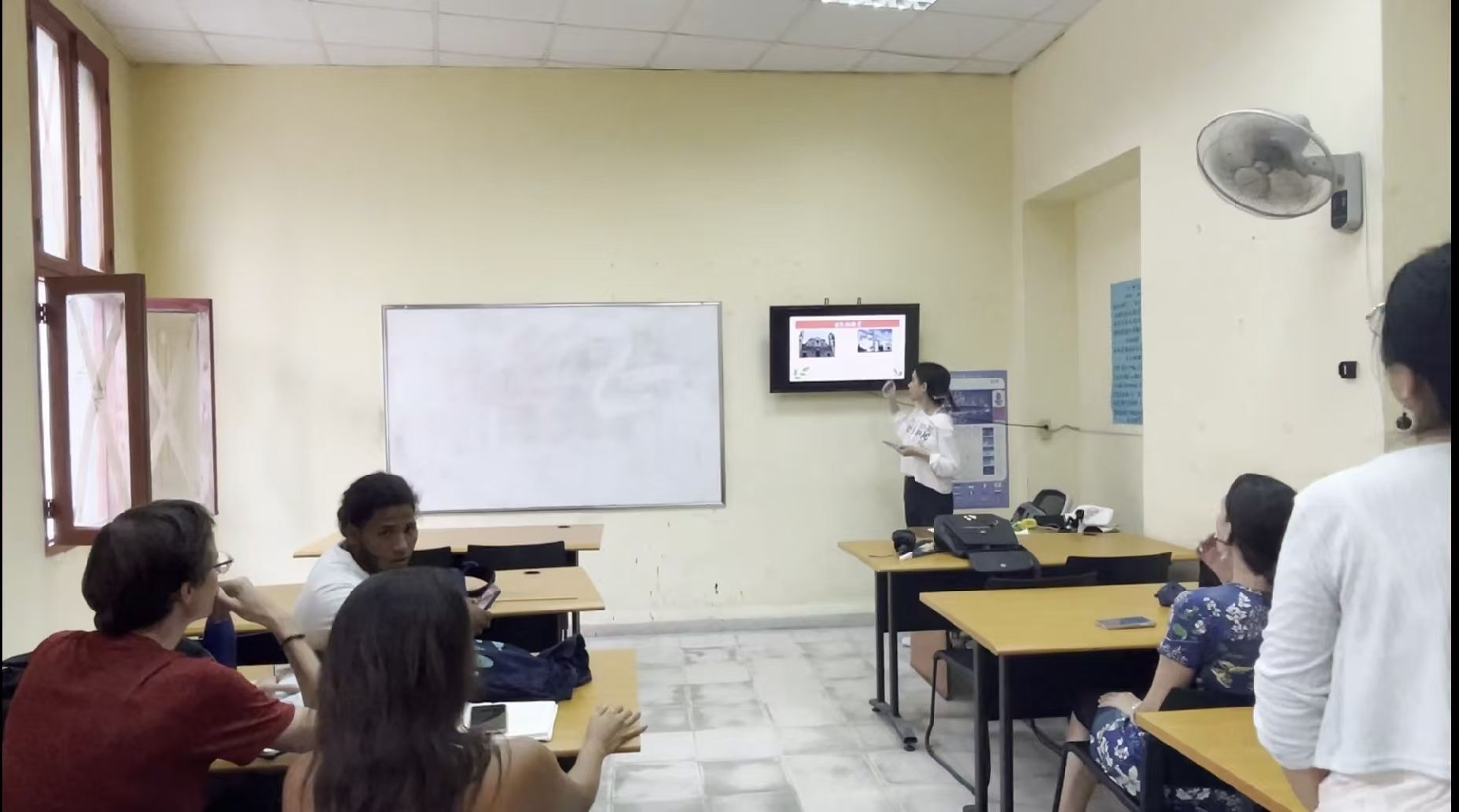 “诗韵悠长·友谊桥梁”暑期社会实践团队走进古巴哈瓦那大学孔子学院,为古巴学生带来了中华诗词文化的盛宴,开启了他们的中华诗词文化之旅。按照前期计划,该社会实践团队的队长是苏晗瑜同学,队员分别由在古巴的翟淑芳、罗马尼亚的刘歌和泰国的卢泽萍组成,她们都是作为汉语志愿者在海外工作。