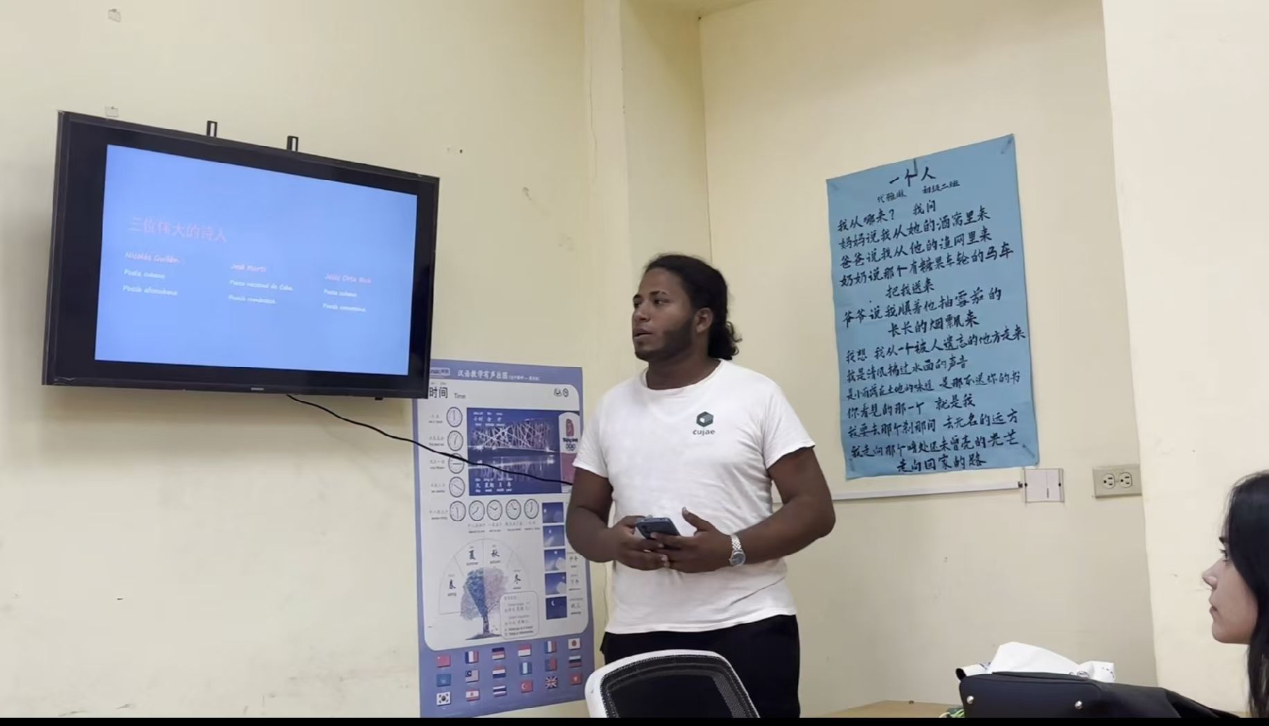 在这次活动中,团队成员翟淑芳不仅将中国诗词文化带到了古巴,还在文化交流过程中深入了解了古巴的文化及诗歌。活动开始时,团队成员聆听了古巴学生分享的不同时期的古巴诗歌,包括殖民时代、新殖民时代、革命时代及当代的作品,从中感受到两国诗歌文化在体裁、选题等方面的差异,也更深刻地体会到中国与古巴各自独特而丰富的文化魅力。