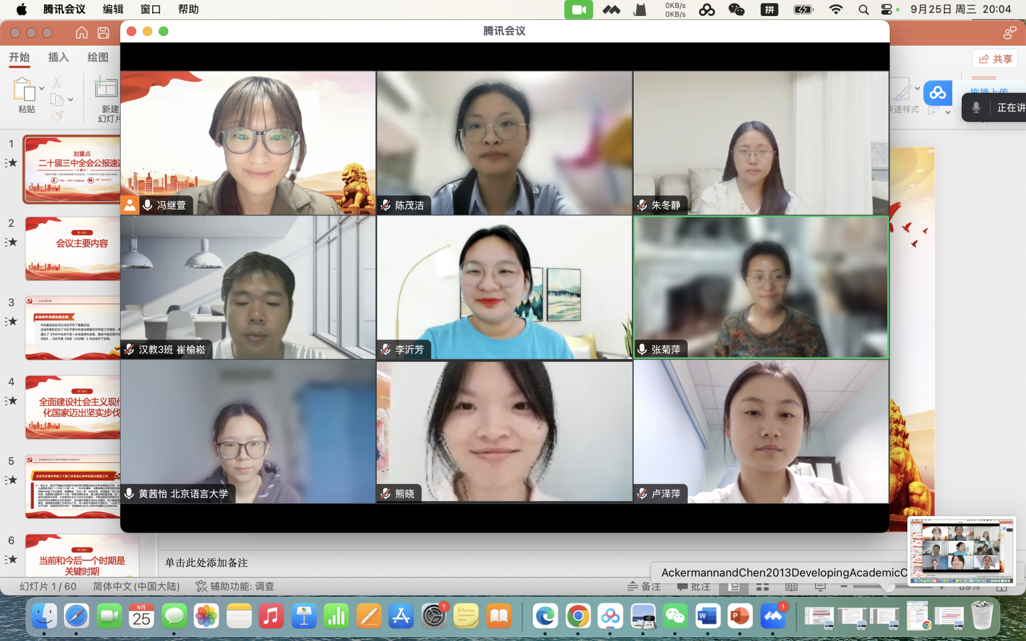 第一团支部于9月26日举办了一场别开生面的线上专题学习活动。尽管汉语国际教育专业的研究生同学们遍布全球各地,但他们通过网络平台同步参与了这次意义非凡的学习。