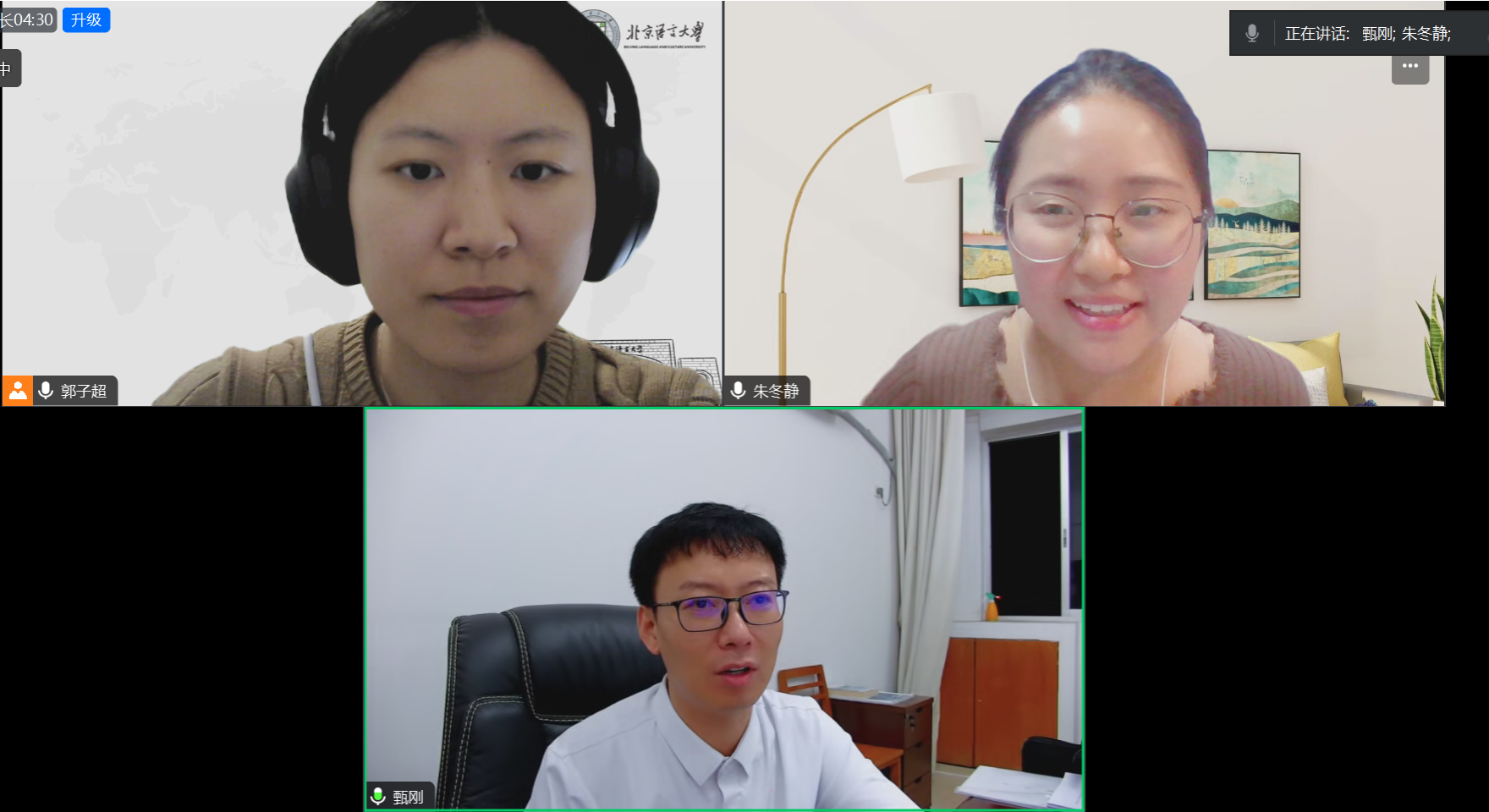 “榜样语研”项目组成员对学校挂职广西都安瑶族自治县副县长甄刚老师进行了线上专访。本次专访由朱冬静主持,郭子超一同参与。