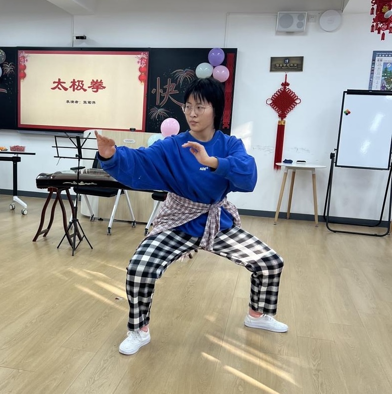 童道珺、朴善花同学的歌声让人沉浸其中;随后,张菊萍同学的太极拳表演,蕴含着阴阳循环、天人合一的中国传统哲思。
