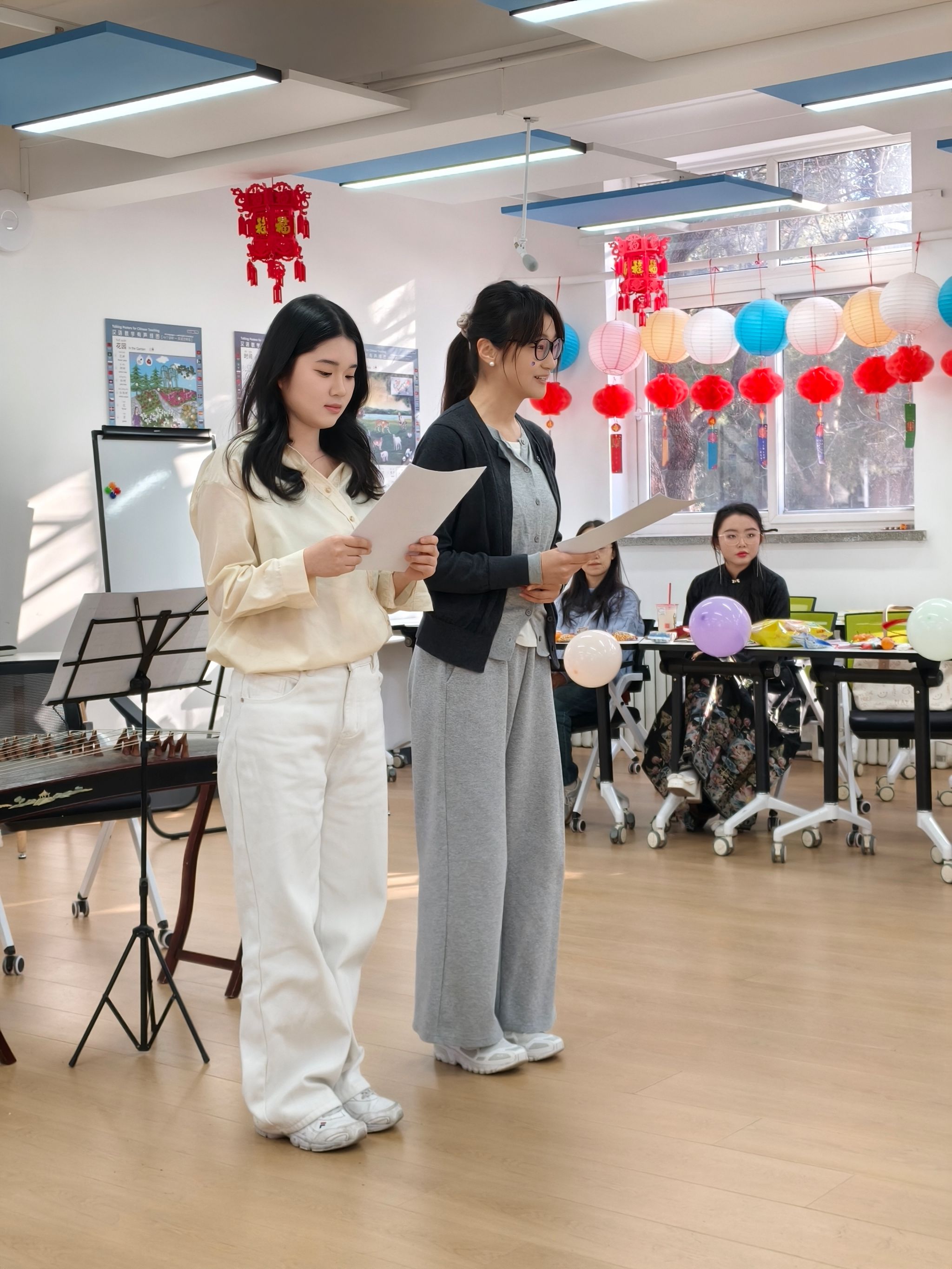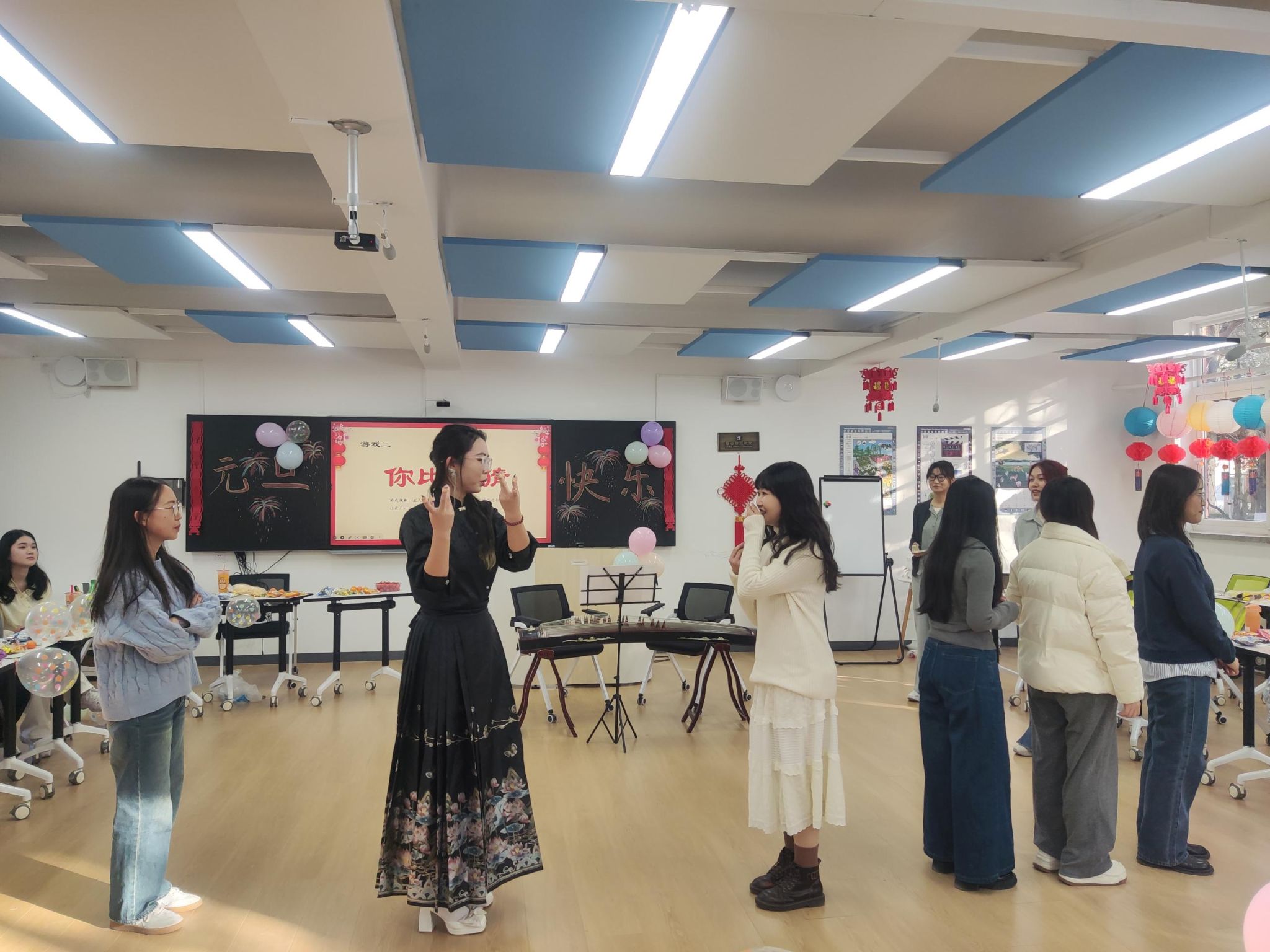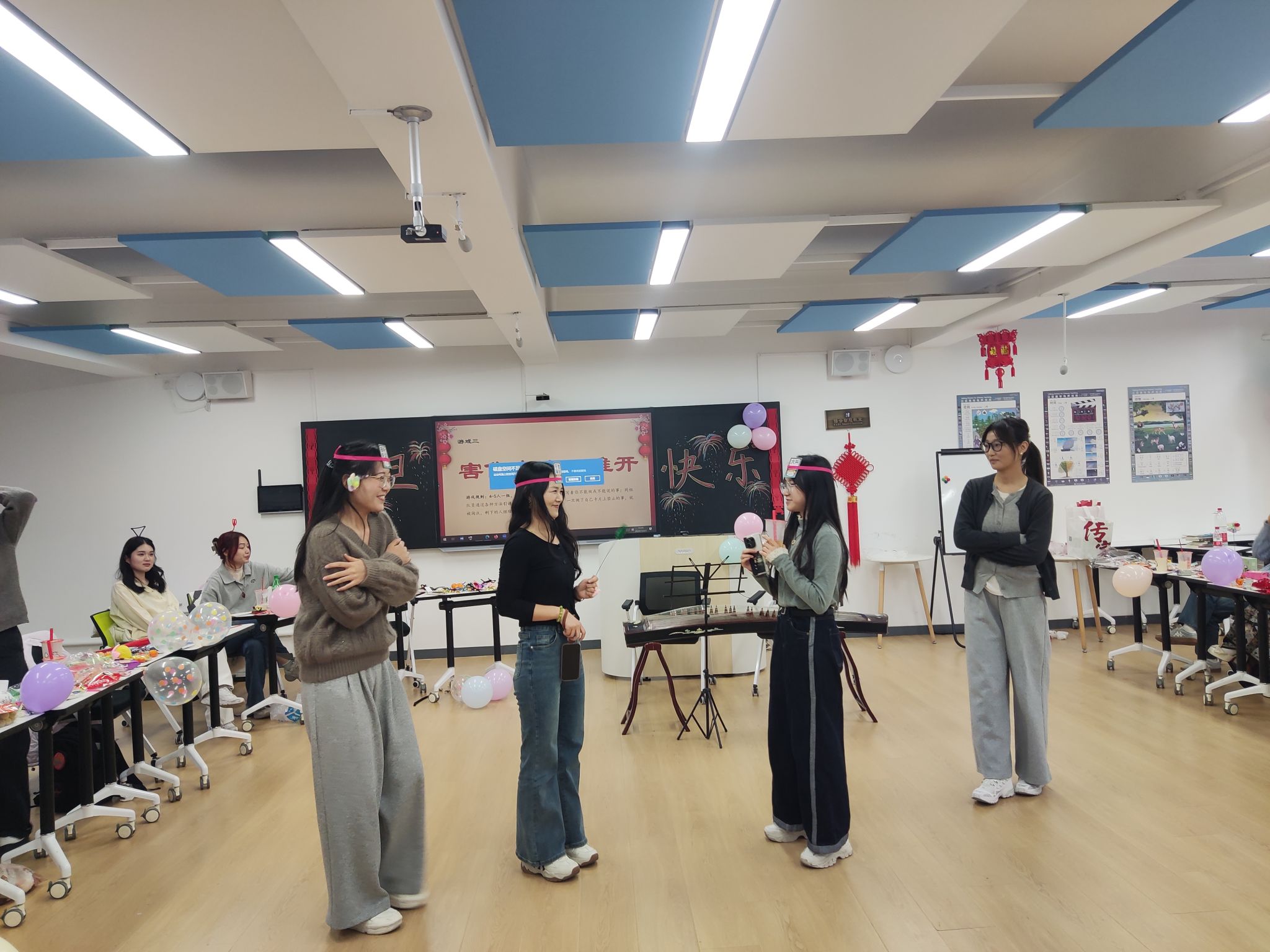 游戏环节同样生动有趣,师生们积极参与,现场欢声笑语。在你比我猜、猜歌名、做绒花等活动中,大家不仅收获了欢乐的互动时光,而且互赠了现场手工制作的绒花作品,传递了温暖心意与美好祝福。