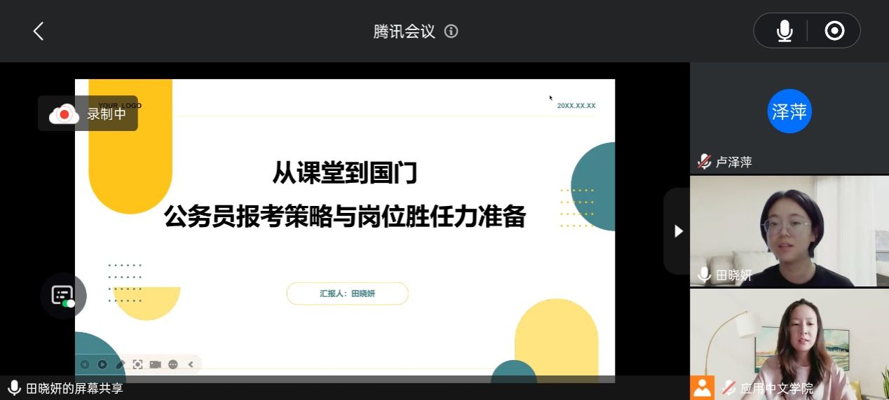 线上举办研究生就业经验分享会。学院党委副书记白浩及数十名研究生参会,会议由辅导员李晨露主持。