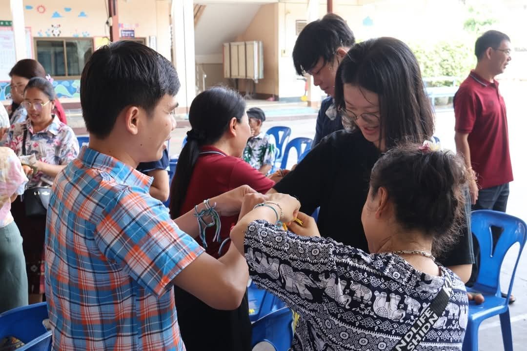 当地教师给我系五彩绳 |  与学生欢度泼水节 |