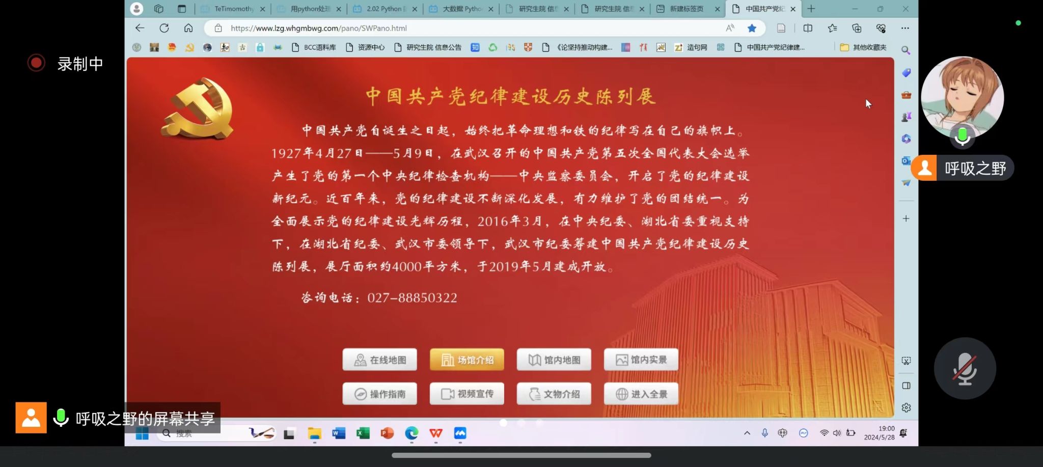 5月28日晚,在学院党委的组织指导下,正妹av 教师支部、研究生支部联合举办了“云游展览馆”党纪学习活动,通过线上平台共同参观了中国共产党纪律建设历史陈列馆数字展馆和中共一大会址纪念馆。此次活动分别由教师支部书记种一凡老师和研究生支部书记张菊萍同学主持,院党委副书记白浩、所属支部党员、发展对象及积极分子共同参与。