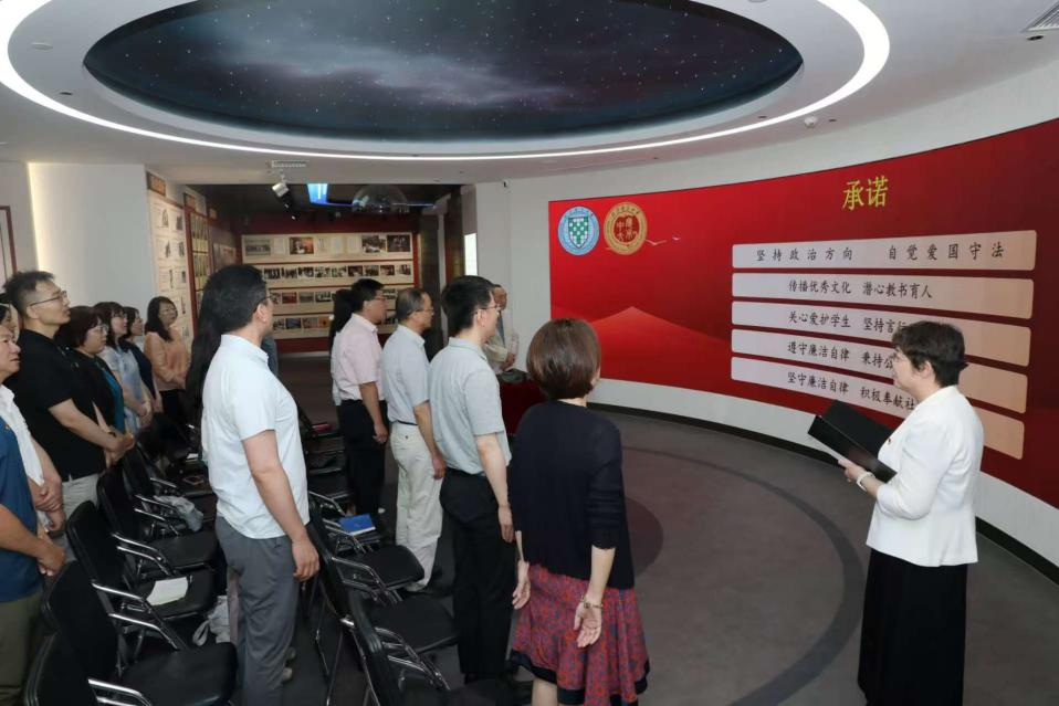 在刘珣教授的见证下,全体成员集体起立,重申了《新时代高校教师职业行为十项准则》,并做出郑重承诺。我们要努力成为有理想信念、有道德情操、有扎实学识、有仁爱之心的好老师,要以刘珣教授为榜样,秉持北语人求真务求的作风,把每一件小事做好,在对岗位的奉献中收获职业尊严。